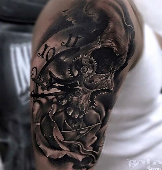 Ya sea combinado con un reloj, pájaros, rosas o cualquier otro elemento, absolutamente todos los tatuajes de calaveras pueden terminar por ser muy masculinos.