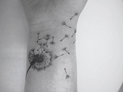 Los tatuajes en la muñeca suelen ser bastante pequeños, perfecto para encajar un tatuaje de diente de leon.